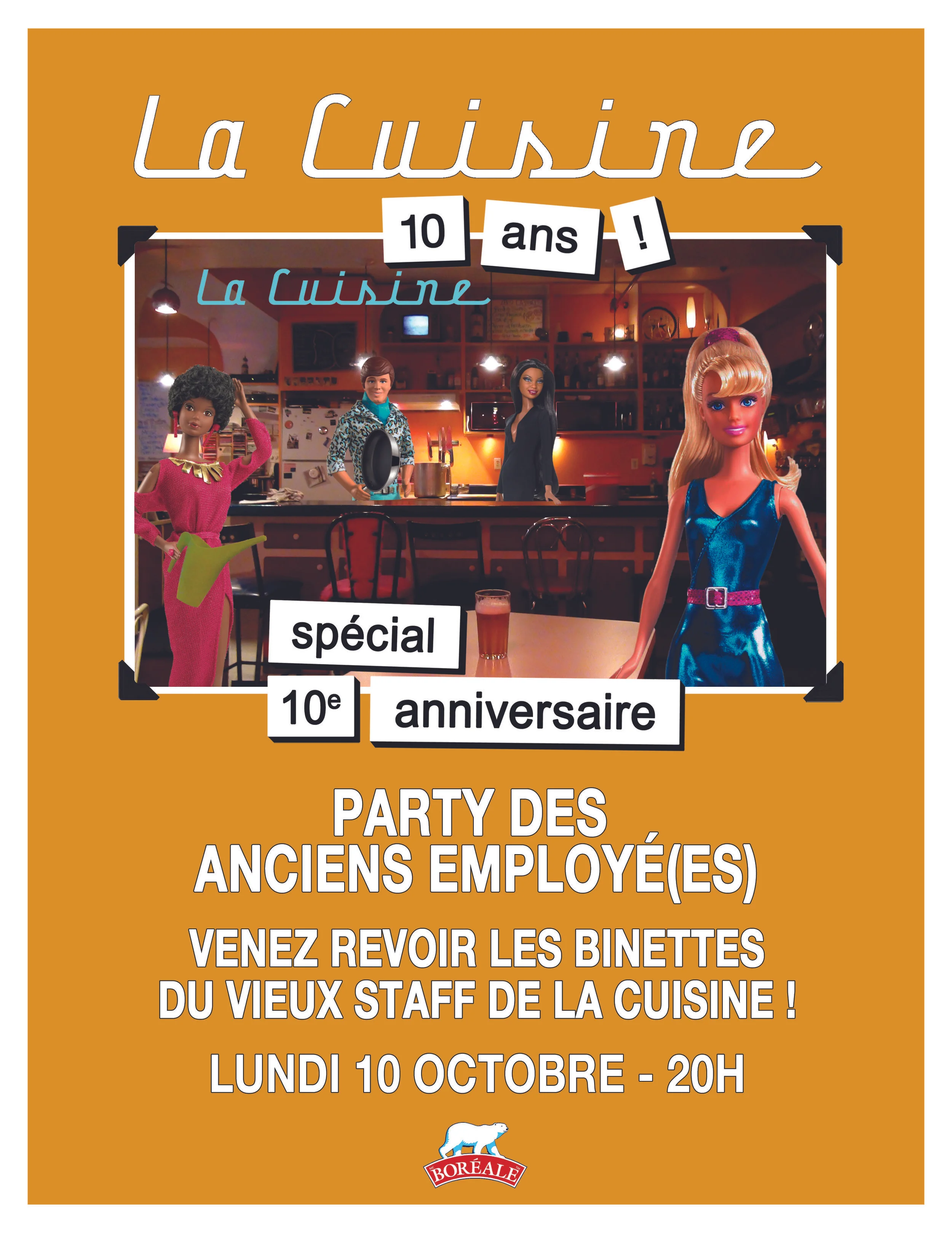 Voici l'occasion parfaite de revoir tous (ou presque!) les bons vieux employés(es) de La Cuisine! Un genre de party staff ouvert à nos clients et amis. Comme ça, simplement pour boire un coup et souligner dix années de bons services et de belles amitiés...